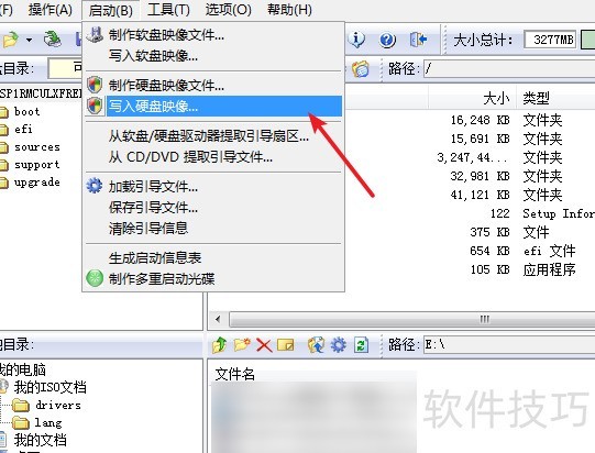 5、 打开“启动”菜单下的“写入硬盘镜像”