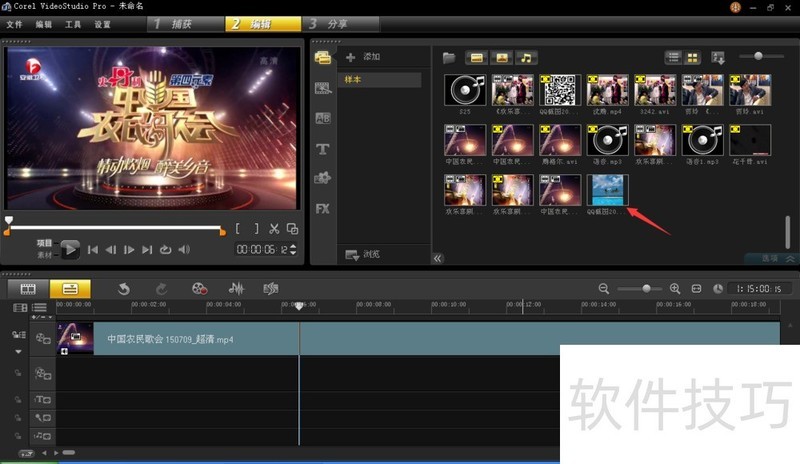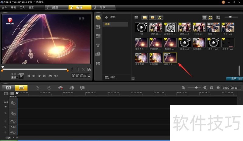 1、 首先,我们安装好会声会影X5后,打开如下图,在箭头指着的地方“导入媒体文件”是添加你自己将要编辑的视频,点击,弹出对话框,选择你的视频所在位置,点击视频然后打开2这样视频就会添加进来,在右边的编辑框找到添加的视频(一般会在最底部)如箭头所指的位置: