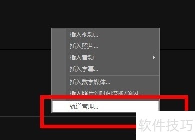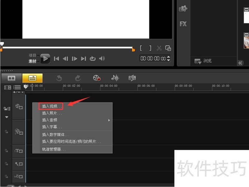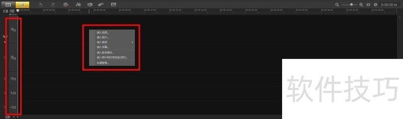 2、 打开之后,在第一行视频轨的位置,右击一下,点击“插入视频”