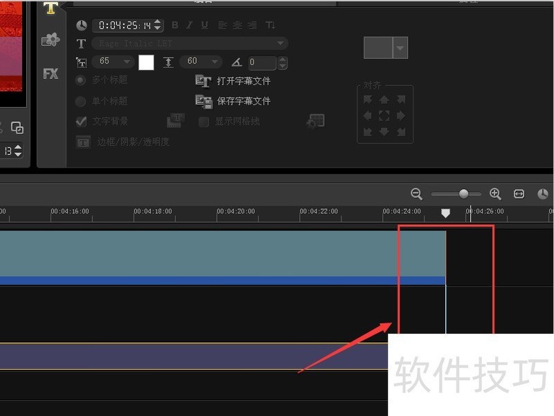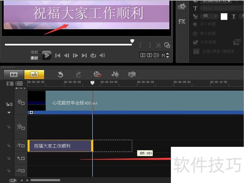 12、 然后在下方的文字轨里,向右拖动字幕的进度条
