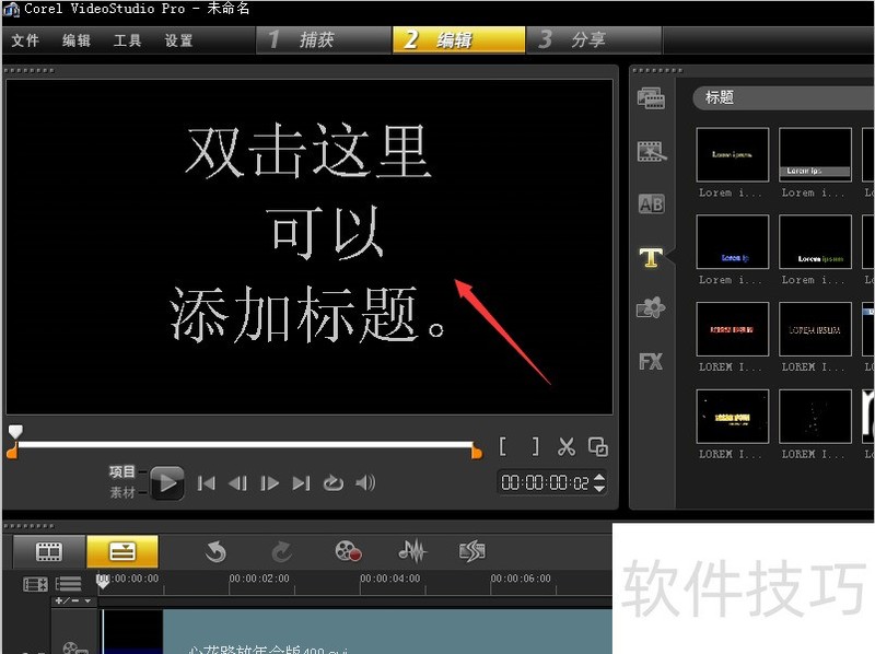 5、 这时候在视频播放的窗口上会显示双击这里可以添加标题,用鼠标在这个窗口里双击一下
