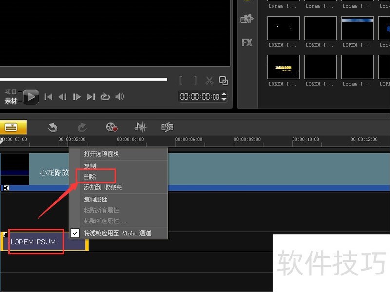 15、 如果需要更换该字幕的话,直接在第三行的文字轨上,右击一下,点击删除,再添加上别的字幕就可以了