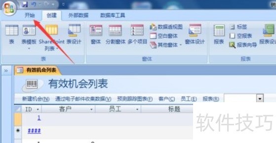 1、 第一步:首先我们打开Access软件,在Access上方点击【开始】选项。