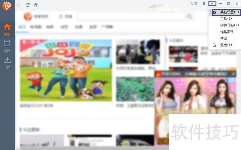 2、 点击这个小三角图标进入菜单选项,并点击“系统设置”。