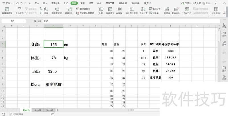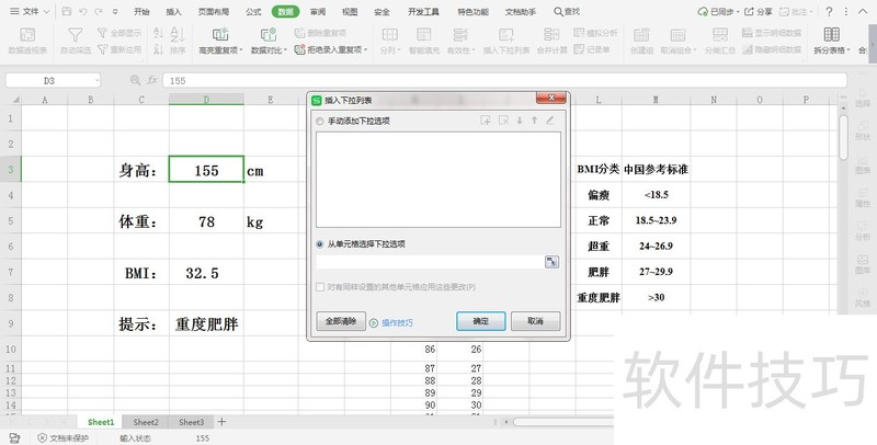 众多朋友频繁向我请教Excel中BMI计算的身高体重选项设定,今天特此分享如何在Excel中设置BMI选择列表,以期对大家有所帮助。