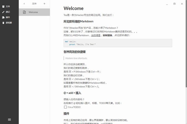 官方软件分类:文字处理大小:63.47 MB时间:2026-12-06软件介绍:Tea是一款为开发者和数码爱好者创造的多平台云笔记,现有的笔记软件对程序员朋友来说要么就是太重且繁琐,要 立即下载楼月文本自动输入器 3.0
