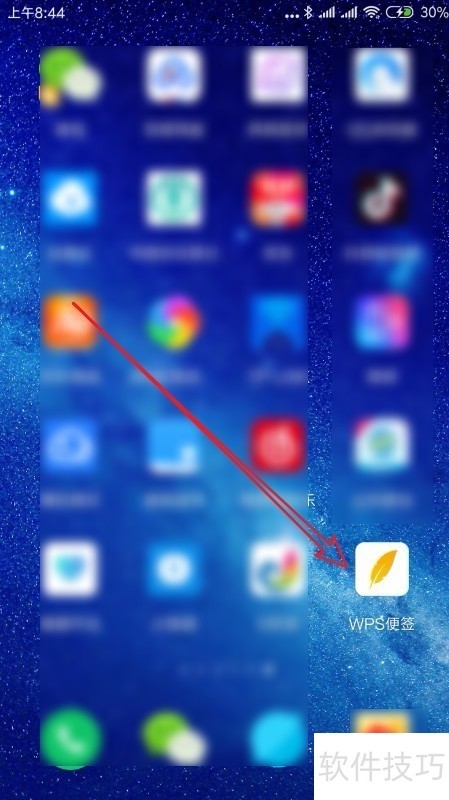 1、 首先我们在手机桌面上找到安装好的WPS便签的图标