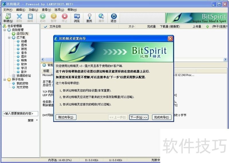 1、 使用软件下载安装“比特精灵”2打开“比特精灵”进入设置向导