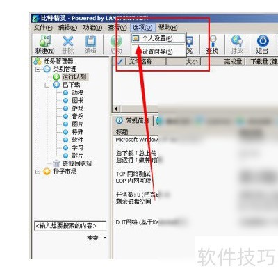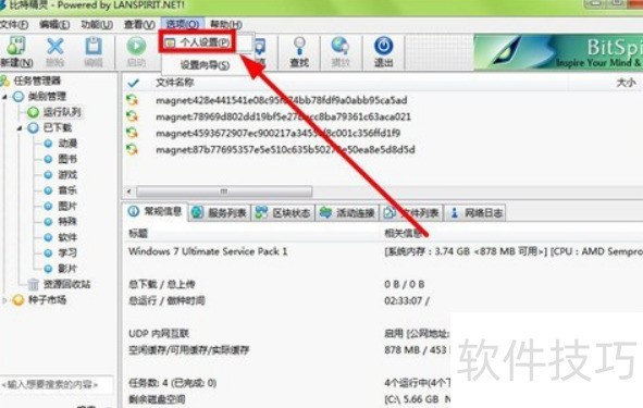 1、 点击【个人设置】打开比特精灵,点击【选项】下的【个人设置】。