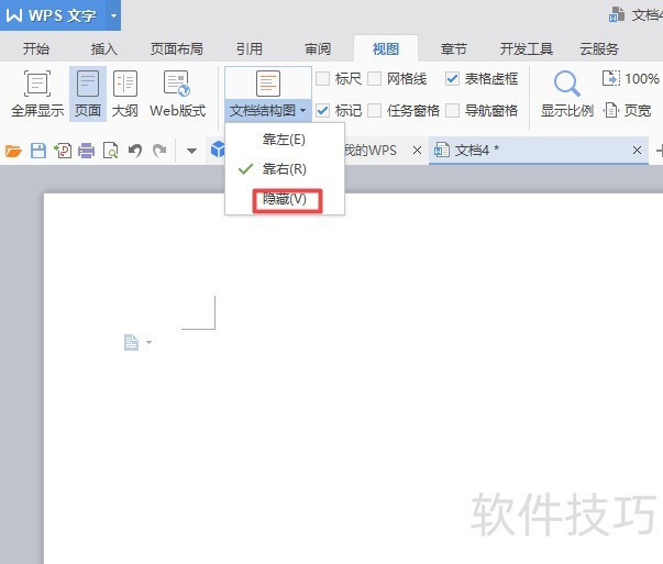 8、 如果想取消文档结构图的话,我们点击隐藏;