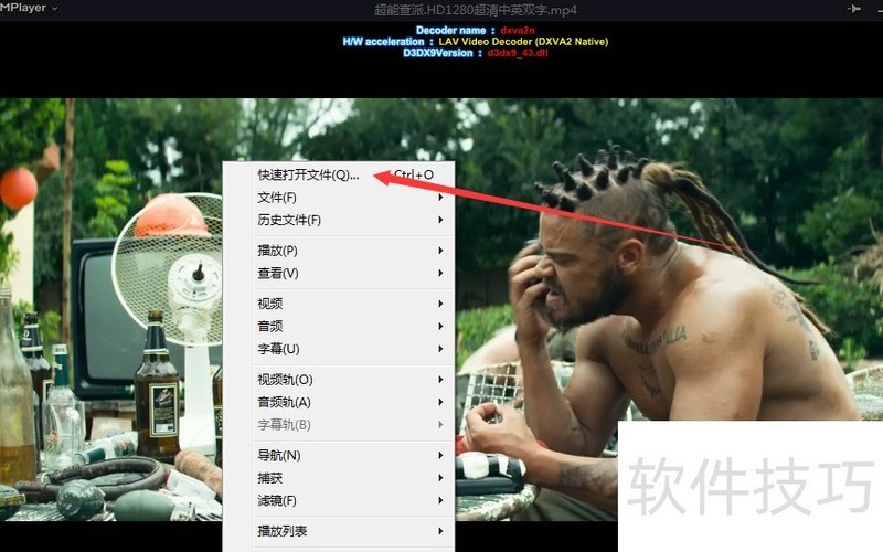 1、 首先,我们打开kmplayer,然后鼠标右键点击kmplayer的播放界面,选择【打开文件】