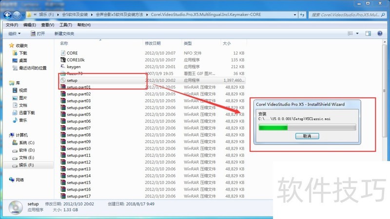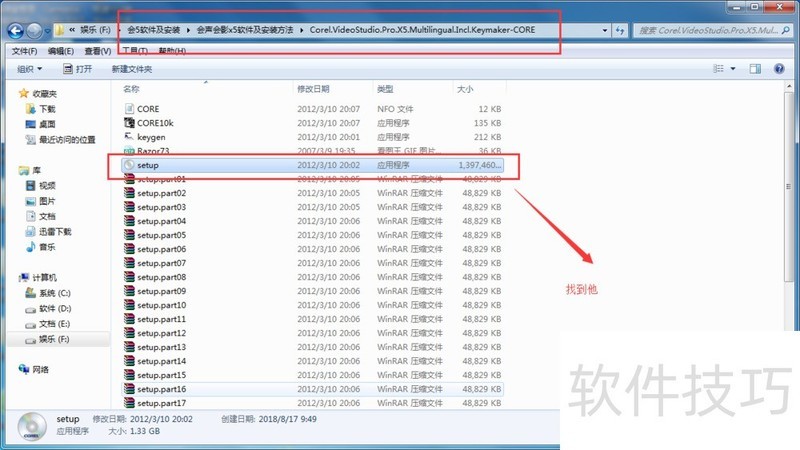 2、 由于软件压缩包不便于直接进行软件的安装,所以我们选中会声会影X5的软件安装压缩包,右键鼠标选择解压,会生成一个解压文件夹。3双击打开解压后的文件夹,在众多的文件目录中进行查找,最终要找到文件夹中的可执行程序“setup”。