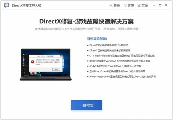 Directx修复工具大师是一款全能的修复工具,专用于解决Windows系统中Directx缺失、异常或错误等问题。它能够快速检测并修复Directx相关问题,提供国内最大最全的Directx资源库。使用该工具可以轻松解决各种软件打不开、运行异常和游戏崩溃等问题。无论是丢失还是损坏的Directx文件,都可以通过该工具进行修复。此外,该工具还支持跨平台使用,并且操作简单方便。对于需要修复Directx相关问题的用户来说,这款工具是一个不可或缺的工具。