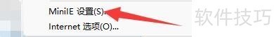 4、 在弹出下拉栏中,点击“MiniIE设置”