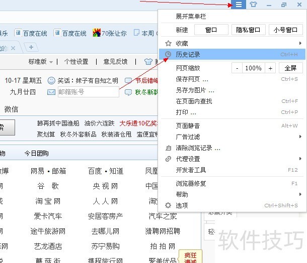 2、 进入到浏览器的主页之后。来到页面的右上方显示菜单