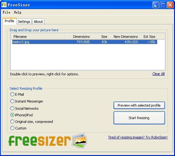 傻瓜型图片尺寸压缩工具(FreeSizer) 1.0绿色版
