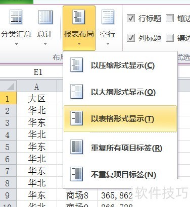 4、 选择设计——报表布局——以表格形式显示,数据透视表变成图示的样子。
