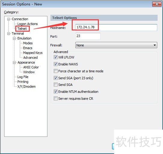3、 如果要telnet一台设备,该设备的IP为172.24.1.78。点击new sesstio