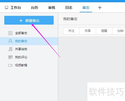 6、 点击【新建备忘】,如图。