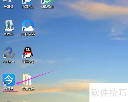 1、 打开电脑,找到今目标。