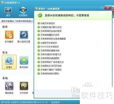 3、 删除已损坏的软件数据 ??最后再使用电脑管家检查一下,没有任何恶意插件了,最后再对IE进行一下修复。 ? ?