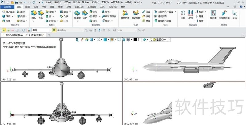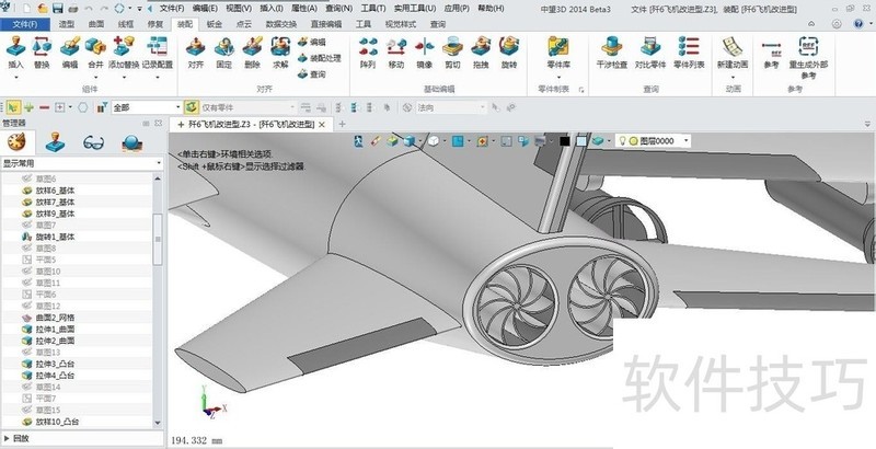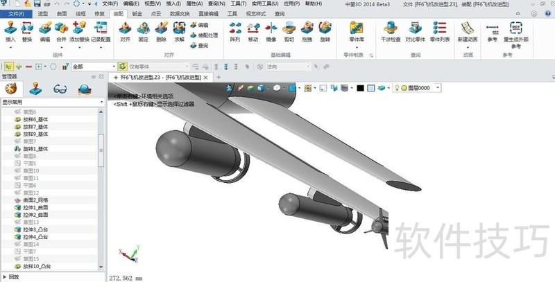 8、 ?通过以上驾驶舱与机身的建模为例,我们能够切身体会到原来中望曲面建模和快速建模能力真的很突出,而我也正是在它的协助下一起完成了对歼6飞机进行改装设计的工作: