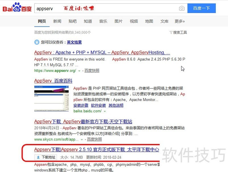 1、 准备环境首先去网上查找搜索一个appserv软件,如图