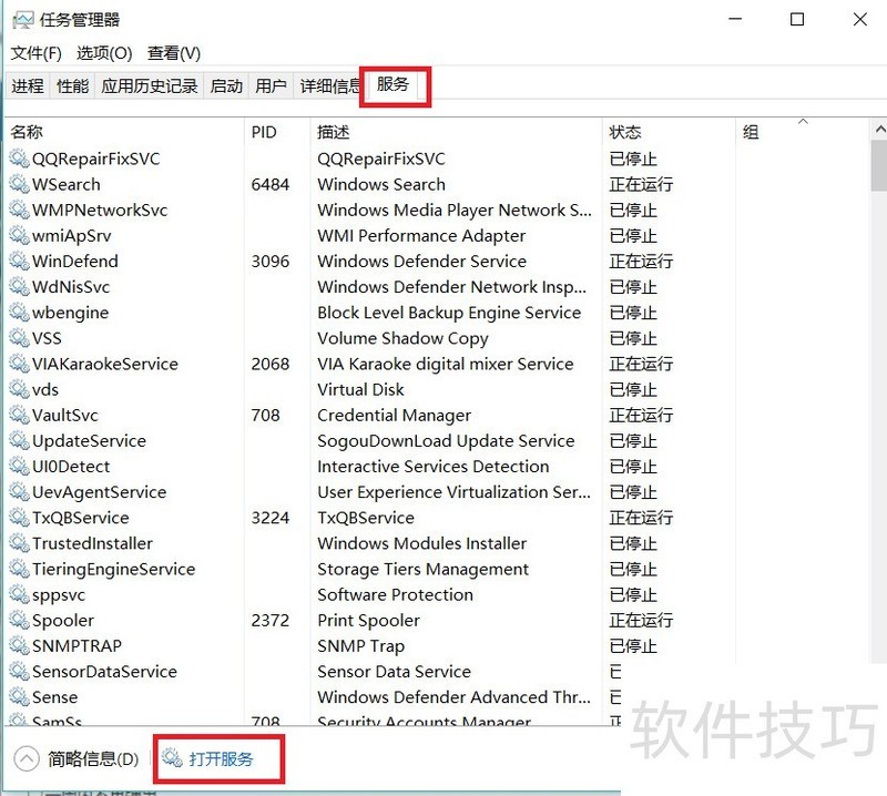 4、 在下面点击打开服务。