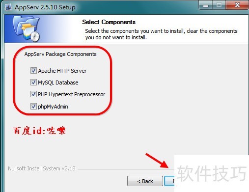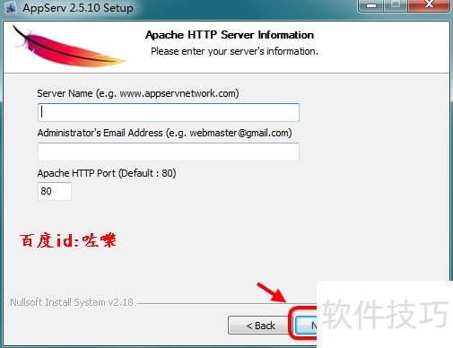 4、 设置路径接着选择一个软件安装的路径,默认是C盘appserv