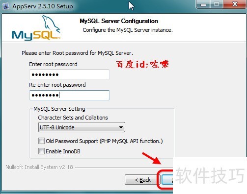 7、 配置数据库接着是mysql数据的管理账号密码,建议配置设置一个安全一点