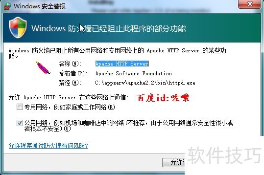 9、 授权网络访问接着会提示apache 和php? mysql等程序需要访问互联网,点通过允许防火墙