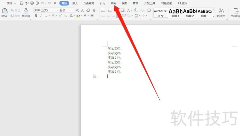 3、 然后点击顶部栏目的“审阅”。