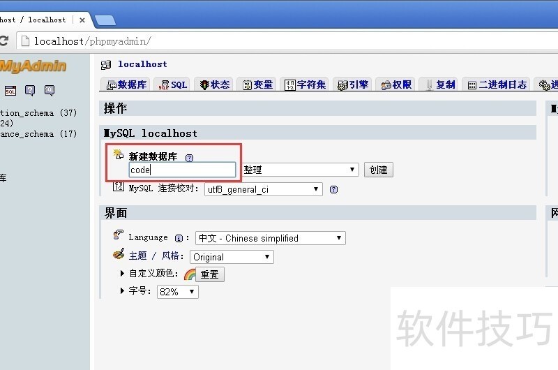 5、 在新建数据库下写上数据名,再点创建,将出来数据创建数据库成功。这样可以了。这里数据名请记住,之后安装wordprress还要用到。若软件重新安装过,新的数据库名不要与之前创建的同名。