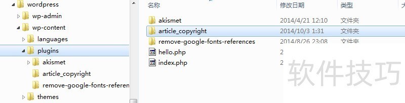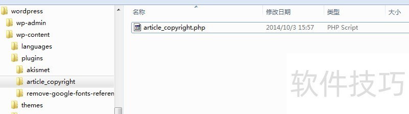 1、 新建插件目录在wordpress/wp-content/plugins目录下新凤欠痕建article_copyright目录