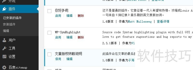 5、 安装插件我们进入后台打开插件管理菜宙佛单