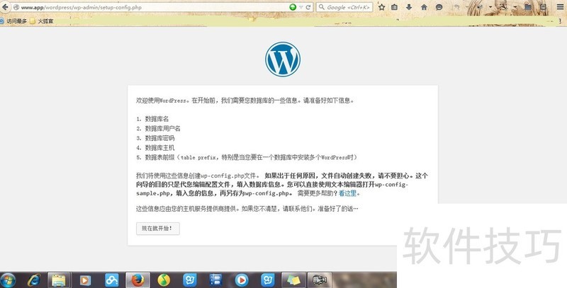 7、 打开软件,选择Localhost,将出来wordpress安装网页。点击现在就开始!进入安装过程。