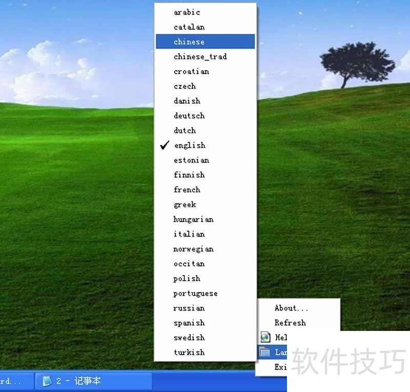 3、 安装完成后运行。发出现在右下角最小化窗口。先设置下语言。在软件上右键,Language--chinese。单击左键,就看到菜单变为中文的了。