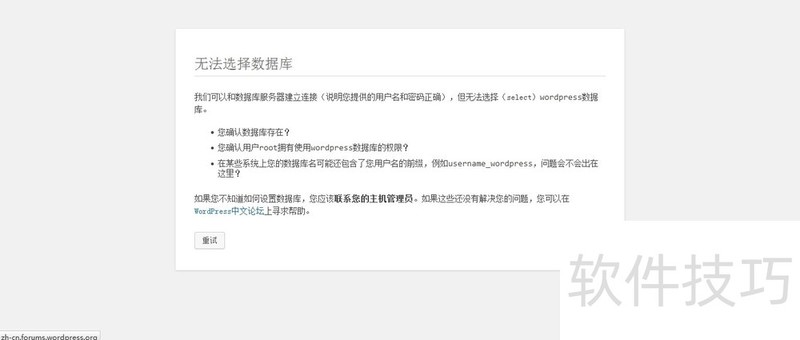 4、 如出现下面情况,你得先创建一个数据库,再重试