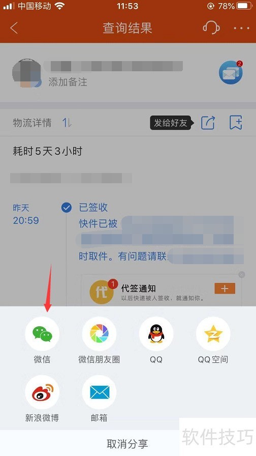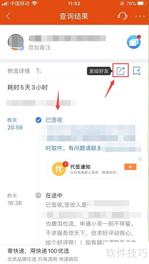 5、 把它发给朋友,这样朋友打开就可以看到快递信息了,如下图
