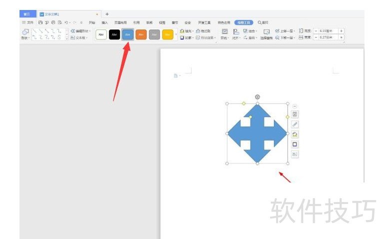 5、 在文档编辑区里使用鼠标左键拖动就画出来十字箭头形状,这就大功告成了;