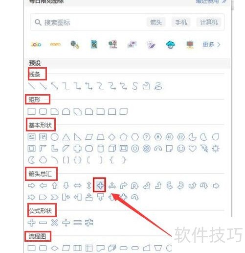 4、 在箭头汇总选项,找到十字箭头选项并点击。