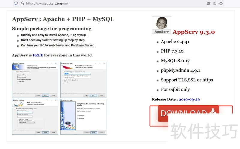 1、 安装包下载,建议各位到官网完成软件包的下载,避免第三方网站下载的包有病毒或者其他程序植入。下载地址https://www.appserv.org/en/