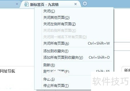 3、 管理标签:右键标签菜单功能可进行关闭、添加到收藏夹、刷新等功能,可单个操作也可批处理。
