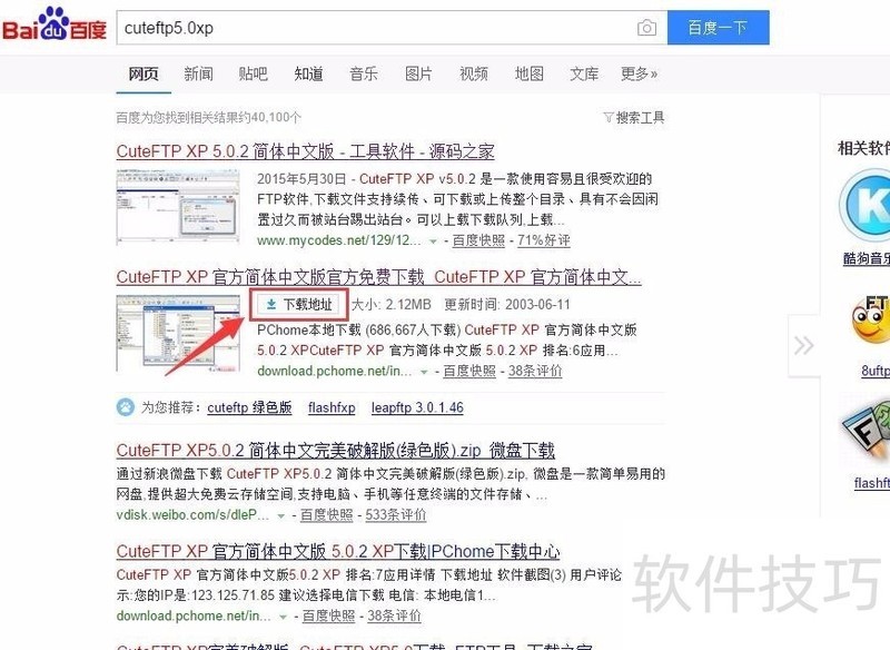 1、 网络搜索cuteftp5.0XP,可以看到有很多资源,找一个安全的下载。