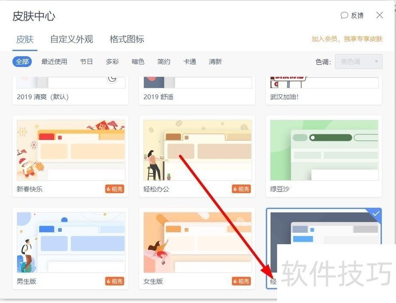 3、 第三步,点击右上角的皮肤选择,如图。