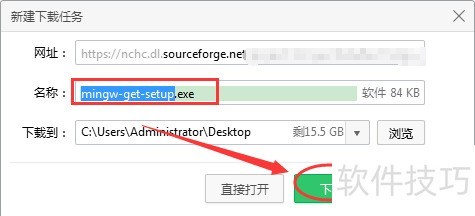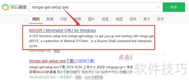 1、 可以直接去官网下载mingw-get-setup.exe打开浏览器,搜索进入下载界面