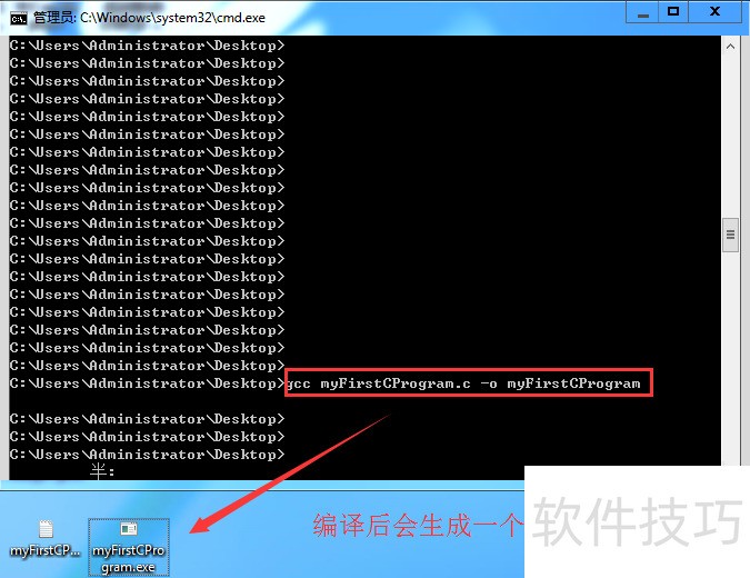 2、 打开命令行,执行以下命令进行编译gcc?myFirstCProgram.c -o?myFirstCProgram