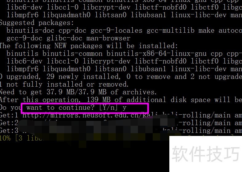5、 中间会提示用户是否继续,输入y表示同意继续。
