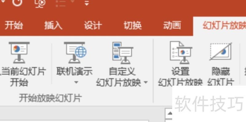 在菜单栏中点击幻灯片放映选项。
