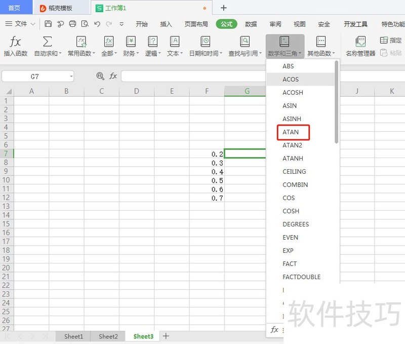 4、 点击ATAN选项